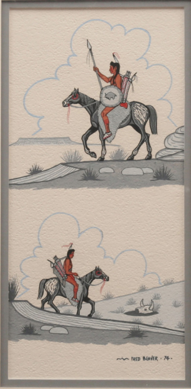 - "Warrior riding horse through mesas", The Charles Little Collection, Oklahoma State University Archives